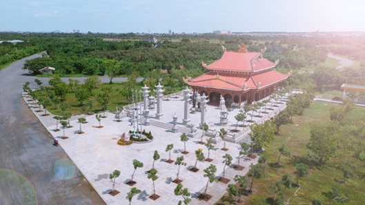 Sơn Tiên được xây dựng cùng với cảnh quan thiên nhiên và hệ thống cây xanh dày đặc.