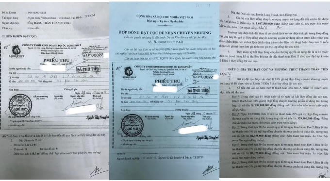 Theo Hợp đồng đặt cọc để nhận chuyển nhượng quyền sử dụng lô đất thuộc dự án KDC Lộc An Mới mà Công ty Địa ốc Long Phát đã ký với khách hàng thể hiện, giá trị đặt cọc được xác định là 95% giá trị hợp đồng chuyển nhượng quyền sử dụng lô đất. Số tiền đặt cọc sẽ được khách hàng thanh toán cho Công ty Long Phát thành 11 đợt.