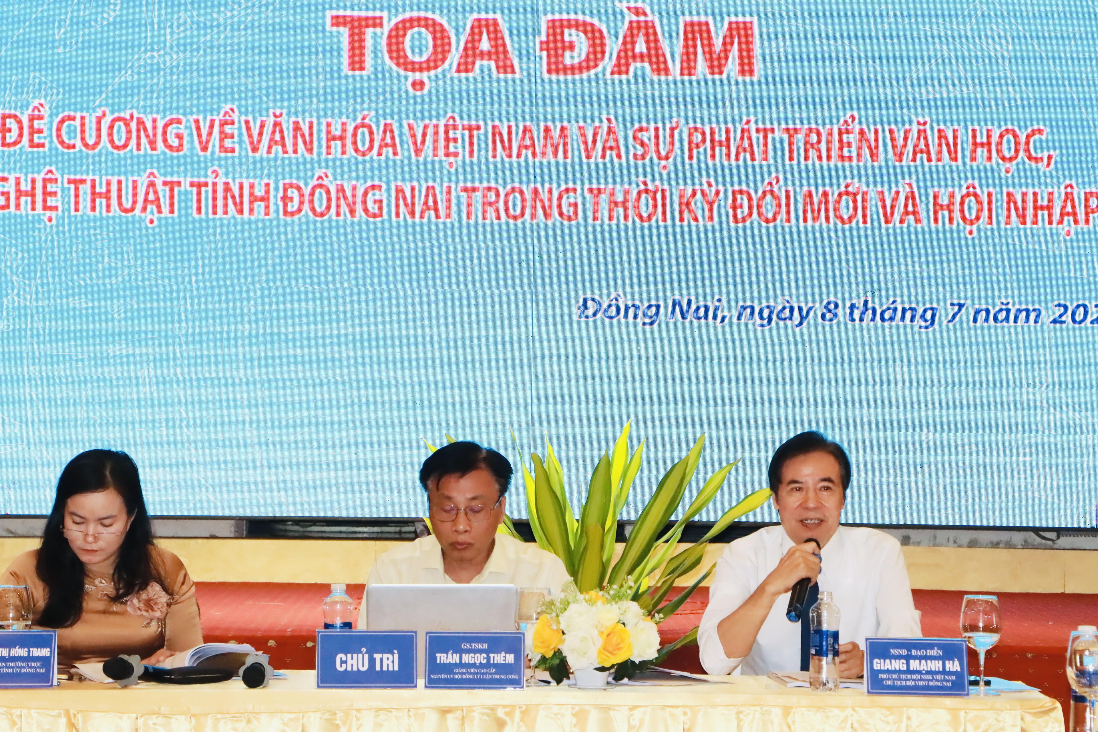 NSND-Đạo diễn Giang Mạnh Hà, Chủ tịch Hội Văn học Nghệ thuật Đồng Nai phát biểu tại tọa đàm.
