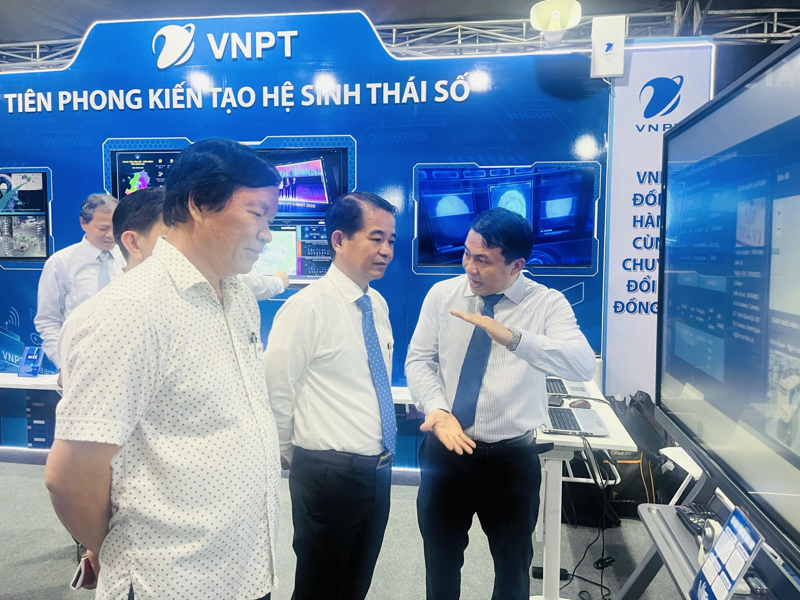 Ông Thái Bảo, Chủ tịch HĐND tỉnh Đồng Nai tham quan gian hàng của một đơn vị tại Tuần lễ CĐS tỉnh Đồng Nai