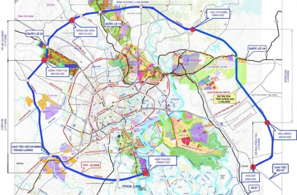 Chỉ hơn một tháng sau khi Quốc hội thông qua chủ trương đầu tư, dự án Vành đai 4 TP HCM đã nhanh chóng chuyển từ giai đoạn chuẩn bị sang giai đoạn triển khai thực địa. Với tổng chiều dài 207km, tổng mức đầu tư khoảng 120.000 tỷ đồng, dự án đi qua các địa phương: TP HCM, Tây Ninh và Đồng Nai (theo địa giới hành chính mới sau sáp nhập).