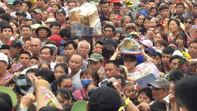 Bất chấp không khí oi ả do ảnh hưởng rãnh áp thấp bị nén có trục đi qua Bắc Bộ, dòng người không ngớt, mang theo lễ vật các vùng miền, nô nức hành hương về cội nguồn đất nước...