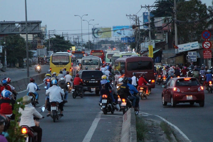 Hàng ngàn người dân cùng với rất nhiều đồ đạc trở lại Sài Gòn làm việc, học tập sau ba ngày nghỉ lễ khiến mật độ phương tiện tăng đột biến.