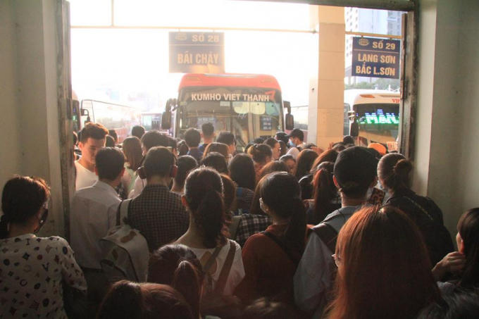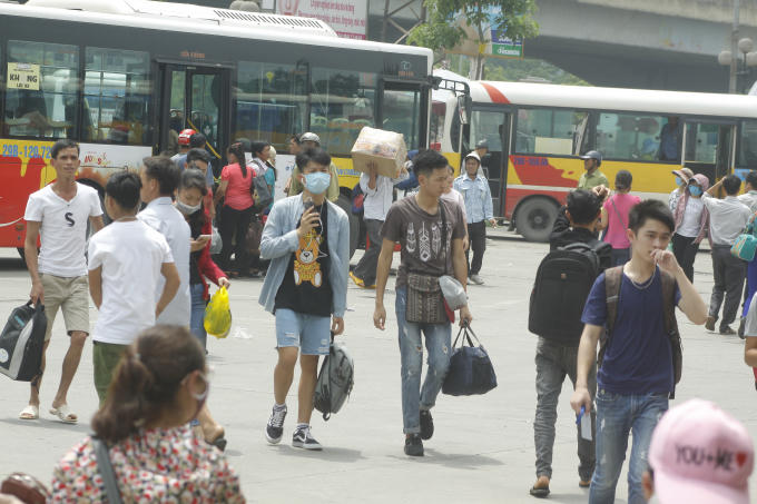 Chiều 1/9, dòng người tấp nập di chuyển ra các bến xe để về quê nghỉ lễ 2/9 với kỳ nghỉ kéo dài 3 ngày.