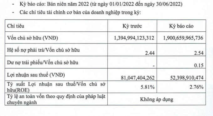Cùng với đó, hệ số ROE (tỷ suất lợi nhuận/vốn chủ số hữu) cũng giảm mạnh từ 5,81% về 2,76% trong 6 tháng đầu năm 2022.