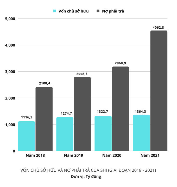 Dòng tiền từ hoạt động kinh doanh bị âm dẫn tới việc nhiều khoản nợ của SHI "phình to" ra. Tổng kết 6 tháng đầu năm 2022, nợ phải trả của SHI là hơn 4.819 tỷ đồng, tăng 6,07% so với cùng kỳ năm 2021.