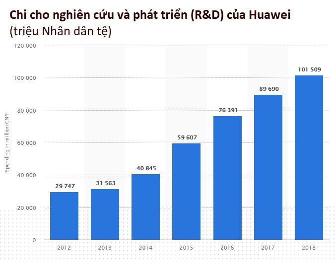 Chi tiêu cho nghiên cứu và phát triển hàng năm của Huawei. Nguồn: Statista.