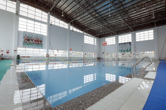 Bể bơi hiện đại dành cho các cầu thủ thư giãn sau giờ tập luyện mệt mỏi