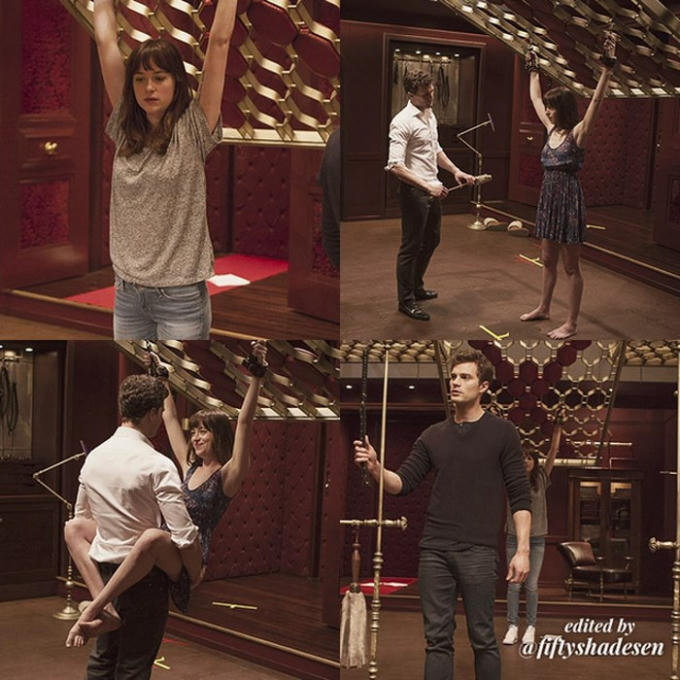 Chính hai diễn viên Jamie Dornan (Christian Grey) và Dakota Johnson (Anastasia Steele) không giấu nổi sự ngạc nhiên khi bước vào căn phòng. Họ vừa ngỡ ngàng với những thứ mới lạ, quái dị vừa lo lắng khi phải diễn những cảnh này.