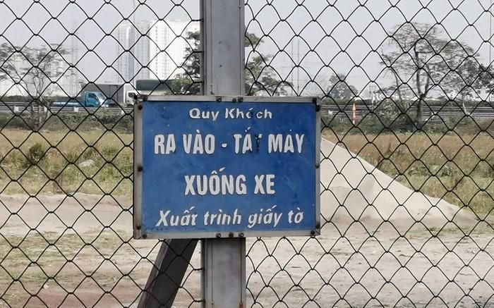 Lối vào cũng treo biển yêu cầu xuất trình giấy tờ khi ra vào khu đất dự án