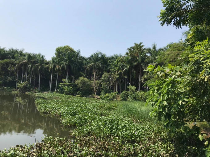 Rong rêu và cỏ mọc che khuất mặt hồ.