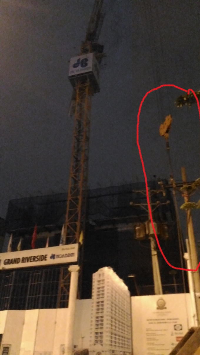 Theo quan sát bằng mắt thường có thể thấy, tháp cẩu gắn chữ Hòa Bình có phần đầu và đối trọng vượt ra ngoài phạm vi công trình dự án. Bao quanh công trình là nhà dân sinh, đường dành cho người qua lại. Nhiều người cho rằng, sự việc xảy ra đêm 9/2 nếu vị trí vào nhà dân thì sẽ khó lường trước được hậu quả ra sao. Nhà thầu Hòa Bình là đơn vị thi công xây dựng nhiều công trình quy mô lớn tại TP HCM. Được biết, chiếc cần cẩu tại công trình là được Hòa Bình thuê từ một công ty khác. Việc cần cẩu có đạt chất lượng kiểm định hay không đến nay vẫn chưa ai biết.
