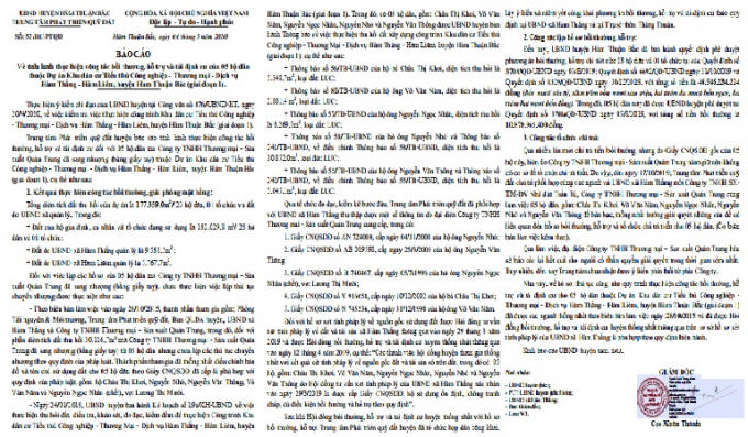 Báo cáo số 52/BC-PTQĐ ngày 4/5/2020 của Trung tâm Phát triển quỹ đất huyện Hàm Thuận Bắc.