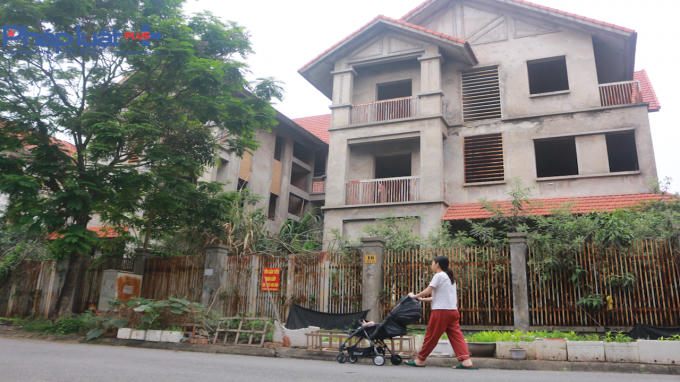 Nhiều căn, nhiều dãy biệt thự liền kề từ khi xây xong phần thô vẫn để không, hoang hóa, sụt lún xuống cấp trầm trọng.