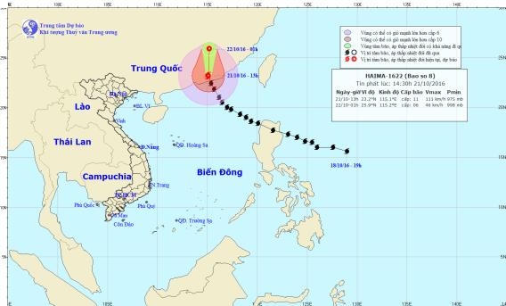 Hồi 13 giờ, vị trí tâm bão ở vào khoảng 23,2 độ Vĩ Bắc; 115,1 độ Kinh Đông, cách Hồng Kông (Trung Quốc) khoảng 150km về phía Đông Bắc. Sức gió mạnh nhất ở vùng gần tâm bão mạnh cấp 11 (105-120km/giờ), giật cấp 13.