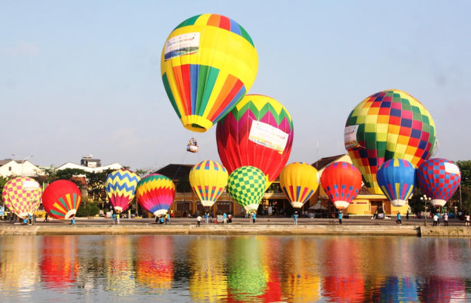 Những chiếc khinh khí cầu rực rỡ màu sắc bên bờ sông Hoài, TP.Hội An