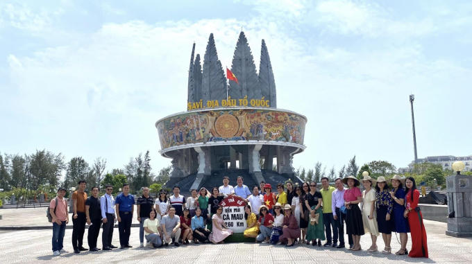 Du khách chụp ảnh lưu niệm tại nơi địa đầu Tổ quốc.