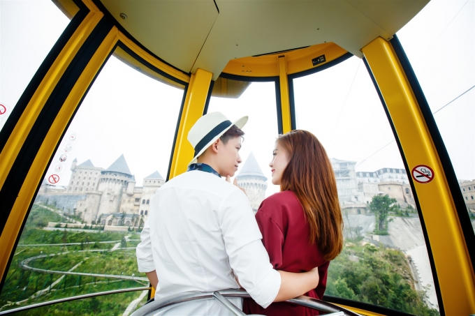 Các đôi uyên ương sẽ cùng sánh vai trong cabin cáp treo đạt nhiều kỷ lục Guinness, thưởng ngoạn vẻ đẹp diễm lệ, thơ mộng của thiên nhiên Bà Nà, nắm tay nhau dạo bước trên những con phố mang đậm phong cách kiến trúc Châu Âu, thả hồn trên những cánh đồng hoa rực rỡ sắc màu, nhâm nhi những ly rượu vang nồng đượm, hứng khởi với những trò chơi đặc sắc trong công viên trò chơi Fantasy Park - khu vui chơi trong nhà top 05 Châu Á hay cùng chiêm bái trước những ngôi chùa linh thiêng để nguyện cầu cho hạnh phúc luôn bền chặt.