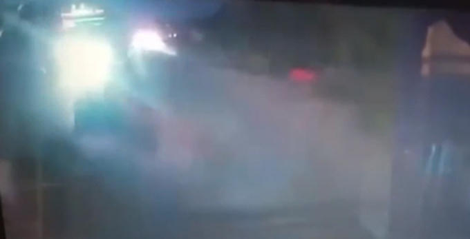 Ô tô rọi đèn pha vào xe khác đi theo chiều ngược lại, khiến tài xế chói mắt đâm trúng người đi bộ tại An Giang (Ảnh cắt từ clip)