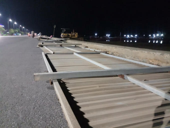 Các công nhân tranh thủ dựng hào rào ngay cả trong đêm.