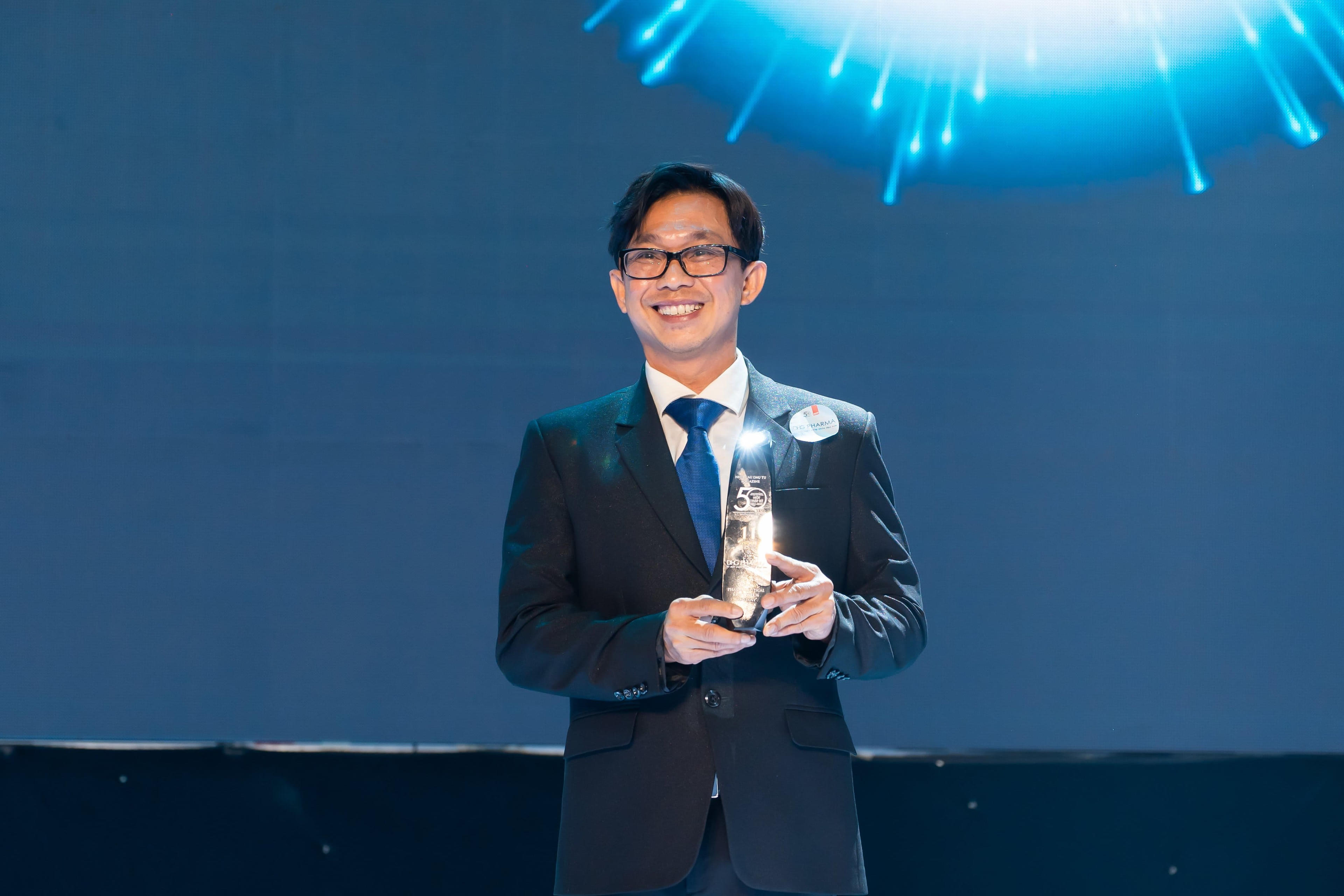Ông Nguyễn Mạnh Thắng - Giám đốc đối ngoại đại diện Dược Hậu Giang nhận giải Top 100 doanh nghiệp phát triển bền vững.