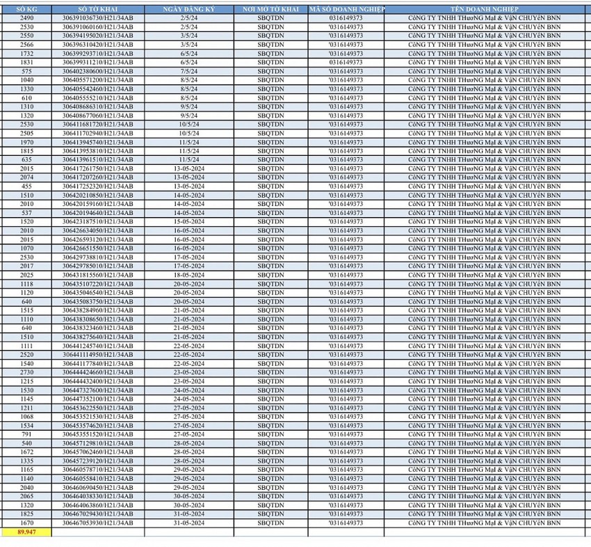 Bằng nghiệp vụ, chúng tôi đã tiếp cận được những hồ sơ khai Hải quan của những công ty nêu trên. Chỉ khảo sát trong vòng tháng 5/2024, chúng tôi hết sức giật mình trước số lượng chuyển hàng đi nước ngoài “khủng” của các “ông lớn”.