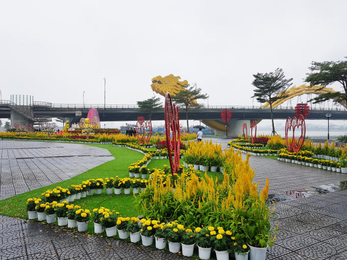 Tại khu vực vỉa hè đường Trần Hưng Đạo phía Đông Cầu Rồng (cầu Tình Yêu), người dân sẽ được chiêm ngưỡng hơn 60 sắc hoa được thiết kế, xây dựng trên diện tích gần 4.000 m2.