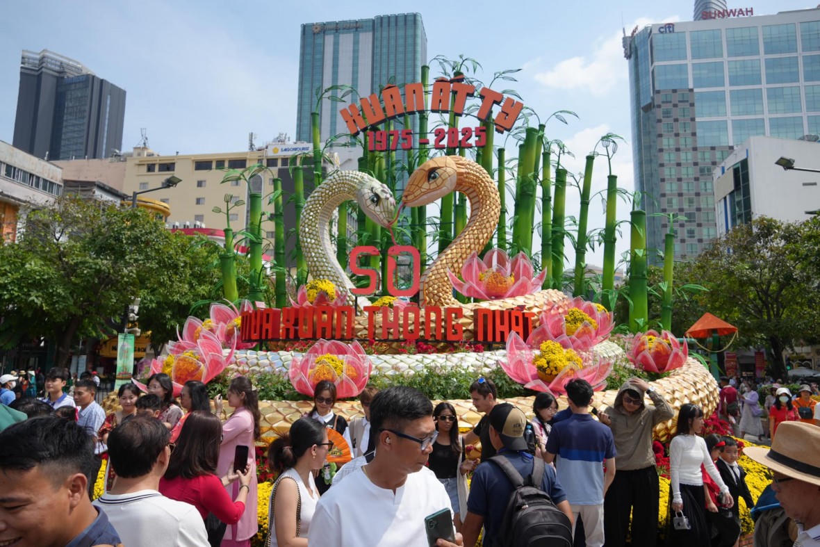Theo Saigontourist Group, Linh vật của năm là Tỵ (Rắn) mang lại nhiều cung bậc cảm nhận khác nhau, Đường hoa Nguyễn Huệ 2025 với những điểm nhấn ấn tượng và nhận được vô vàn lời khen từ người dân và du khách.