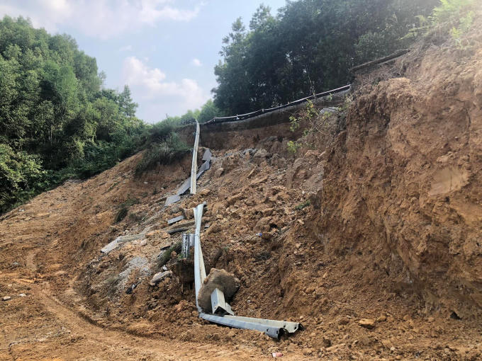 Hình ảnh tuyến đường bị sạt lở nghiêm trọng.