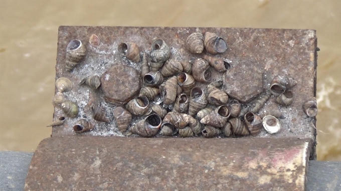 Mặt khác, rác cũng đọng lại trên những mấu trụ cầu với đủ các loại chưa được hóa hết thành tro. Đôi chỗ, có cả những loài thủy sinh bị chết, do người dân phóng sinh chúng không đúng cách, vô hình chung bị mắc lại trên những thanh ngang mặt dưới cầu.