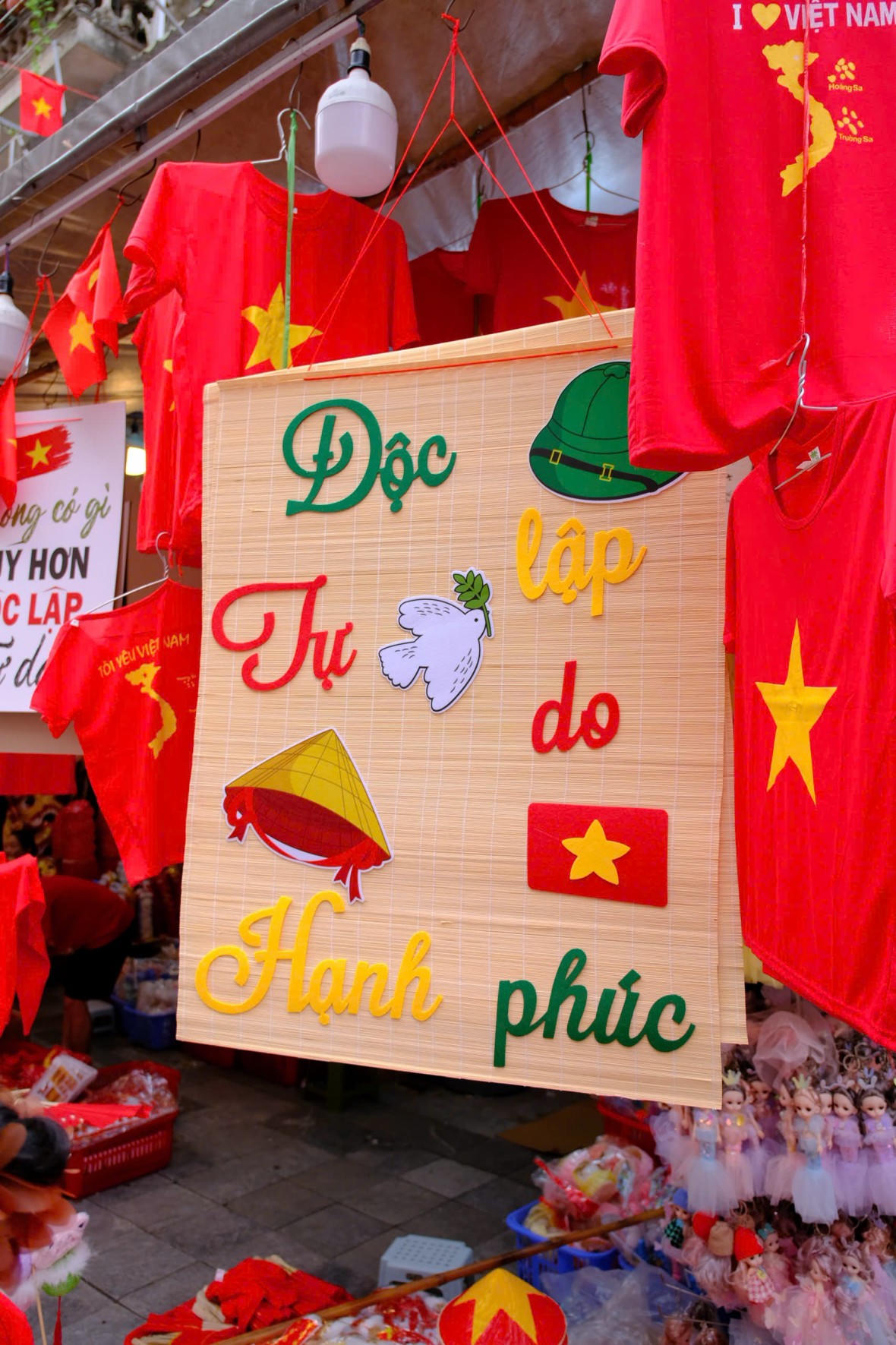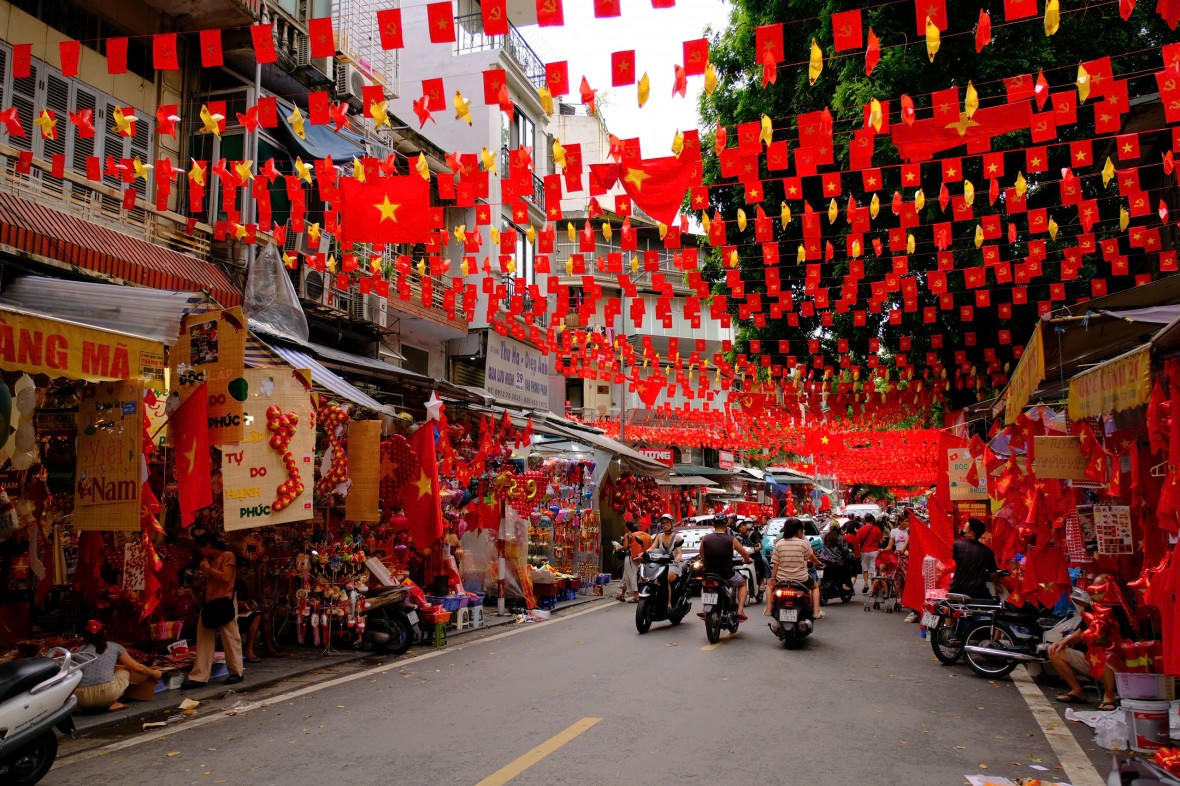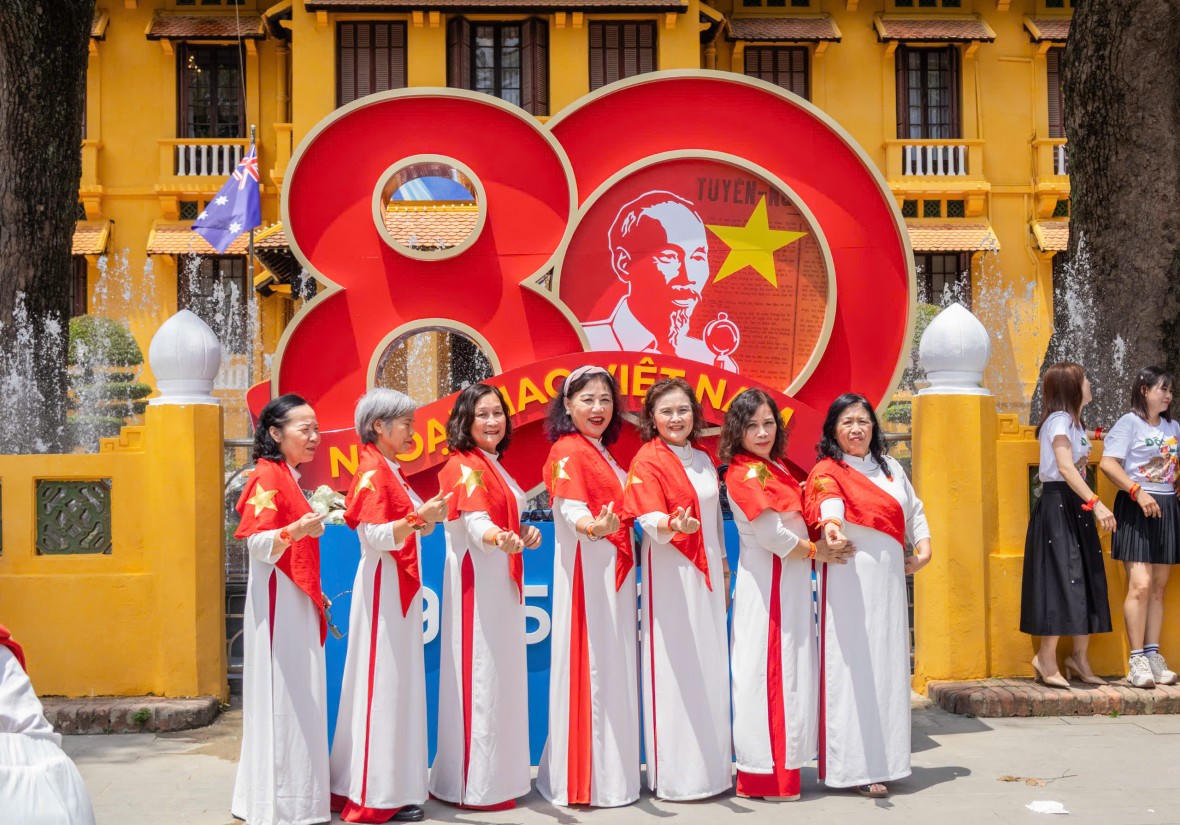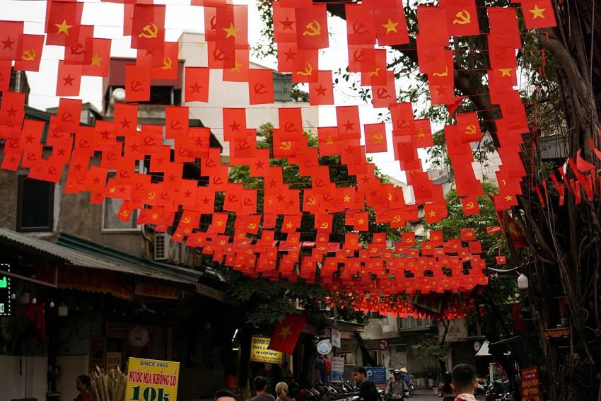 Không chỉ các cơ quan, công sở, mà ngay cả cửa hàng, quán xá cũng đồng loạt trang hoàng. Trên phố, nhiều người dân khoác áo đỏ sao vàng, hòa chung niềm hân hoan trong không khí ngày lễ lớn của dân tộc.