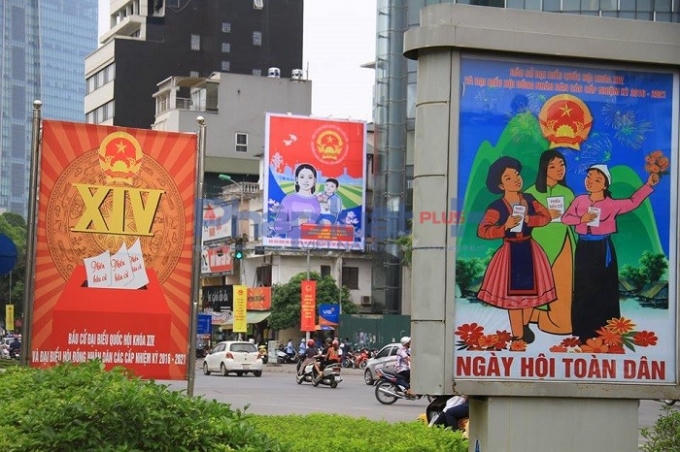 Màu đỏ rực rỡ của quốc kỳ, cờ đỏ được phủ khắp các con đường nhằm chuẩn bị cho ngày bầu cử Quốc hội ngày 22/5 tới đây....