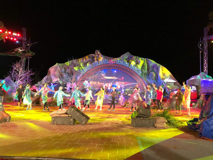 | Hình ảnh tổng duyệt chương trình "Trường Sơn Đông gọi Trường Sơn Tây: Đường qua A Lưới" dưới cơn mưa nặng hạt tối 26/7. |