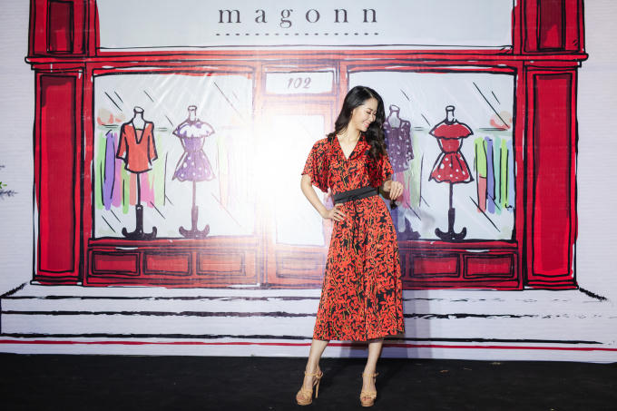 Tối 10/8, Hoa hậu Phụ nữ Toàn thế giới 2018 đã đến dự event khai trương showroom mới của thương hiệu Maggon, do hai nhà thiết kế Tú Ngô, Nguyễn Minh Phúc sáng lập tại Hà Nội.