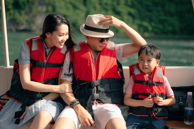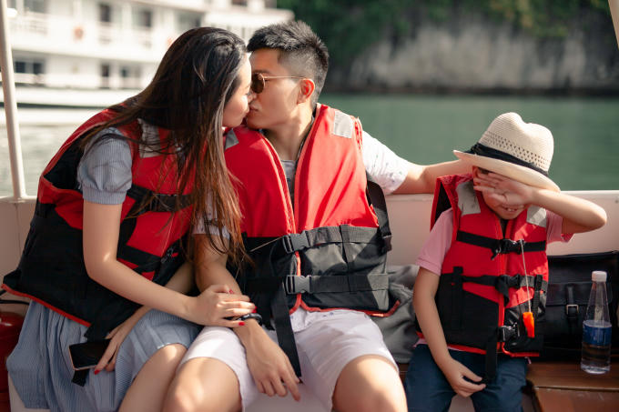 Con trai của Dương Thuỳ Linh năm nay 7 tuổi. Hoa hậu Phụ nữ Toàn thế giới kể dù đã quen với việc bố mẹ thể hiện tình cảm trước mặt, cậu bé vẫn hay ngại ngùng. Nhưng đó là sự ngại ngùng trong hạnh phúc bởi thấy gia đình gắn bó bền chặt, bố mẹ yêu thương nhau. "Con trai tôi không bao giờ đặt ra câu hỏi bố mẹ có yêu thương con không, có yêu nhau không bởi bé có thể thấy điều đó hàng ngày. Tots luôn yên tâm về gia đình", cô nói.