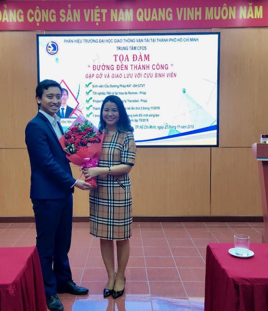 Là cựu sinh viên lớp Cầu Đường Pháp K47 Trường ĐHGTVT, TS. Nguyễn Tiến Long có một thành tích đáng nể về học tập, nghiên cứu và chuyển giao công nghệ trong lĩnh vực xây dựng công trình tại Pháp và Việt Nam: được Học bổng Eiffel, tốt nghiệp bằng kỹ sư và Tiến sỹ tại Viện Quốc Gia về Khoa học ứng dụng Rennes, CH Pháp và ĐH Nottingham, Vương quốc Anh sau khi theo học chương trao đổi của Trường ĐHGTVT với INSA Rennes, hiện tại TS Nguyễn Tiến Long là Project Manager của công ty Tractebel thuộc tập đoàn Engie,CH Pháp.