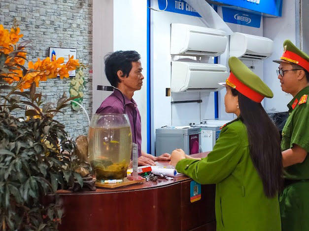 Lực lượng chức năng đến từng cơ sở để tuyên truyền công tác PCCC.