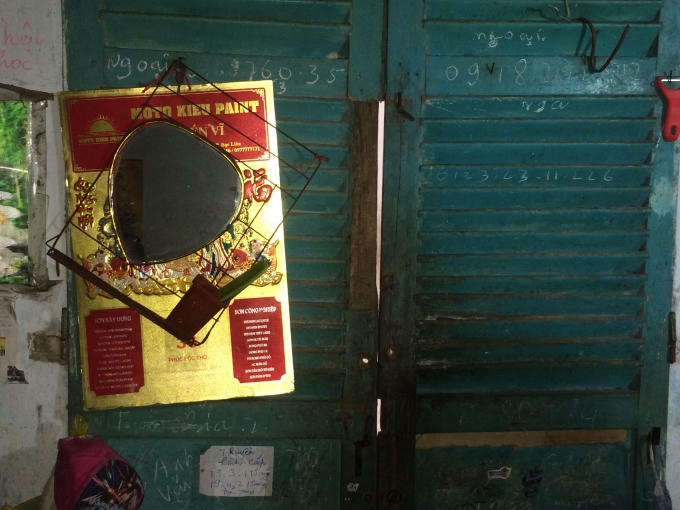 Căn phòng hỗn độn, xộc vào mũi chúng tôi với nhiều mùi từ nấu ăn tới ẩm mốc mưa dột phía trên trần nhà xuống. Bếp nấu họp hẹp tường meo mốc, trong nhà không có gì đáng giá, ngoại trừ chiếc tivi cũ kĩ của người quen cho. Thuê lại chỗ ở nhưng cánh cửa có phần xập xệ vì giá rẻ. Nơi học tập của mấy em cũng là chỗ ngủ và để đồ sinh hoạt gia đình, tối đến bốn người ngủ một góc hết sức chật chội.