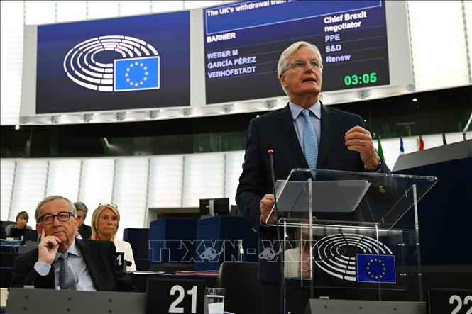 Trưởng đoàn đàm phán Brexit của EU Michel Barnier (phải) phát biểu tại Nghị viện châu Âu ở Strasbourg, Pháp ngày 18/9/2019. Ảnh: AFP/TTXVN