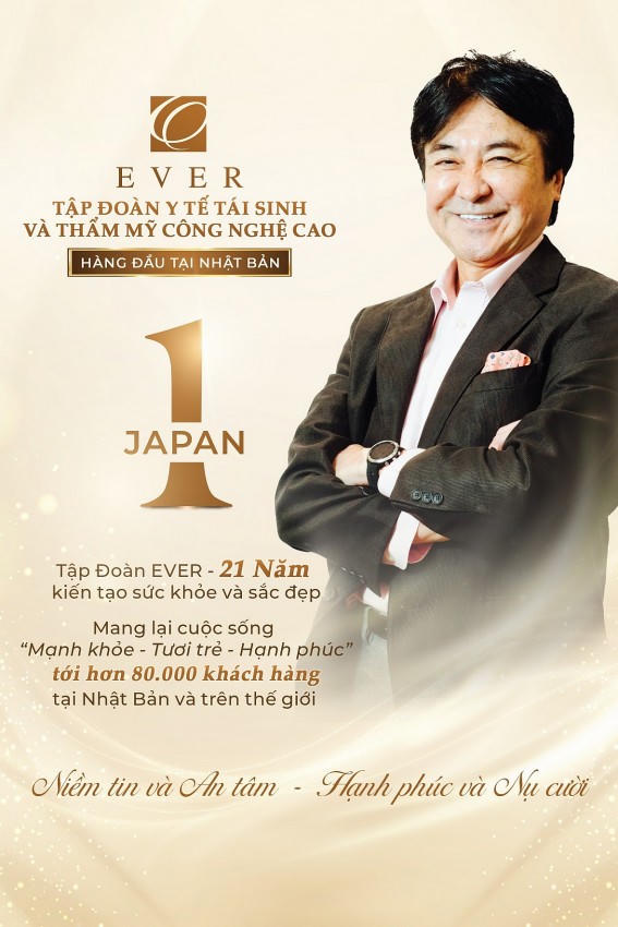 Ever Nhật Bản - Tập đoàn y tế tái sinh và thẩm mỹ cao số 1 tại đất nước mặt trời mọc đã có lịch sử hơn 20 năm hình thành và phát triển. Nơi đây quy tụ đội ngũ bác sĩ, chuyên gia chăm sóc sức khỏe và sắc đẹp hàng đầu Nhật Bản.