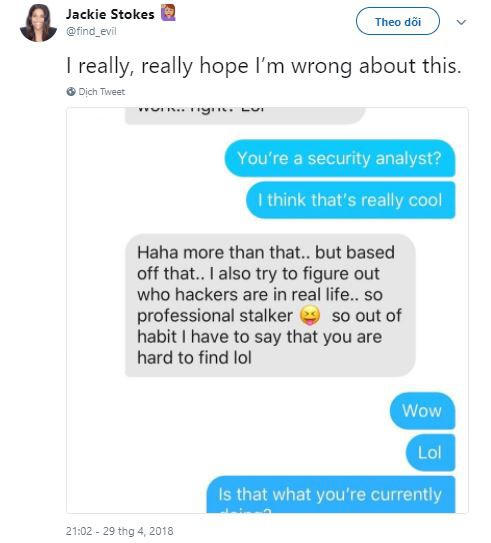Hiện tại, vẫn chưa rõ người nhân viên kia đã bắt đầu tiến hành theo dõi người dùng từ khi nào và với mục đích là gì. Mọi chuyện chỉ được phơi bày khi Jackie Stokes, nhà sáng lập công ty bảo mật Spyglass Security tình cờ phát hiện ra và chia sẻ trên Twitter cá nhân vào ngày 29/4 vừa qua.