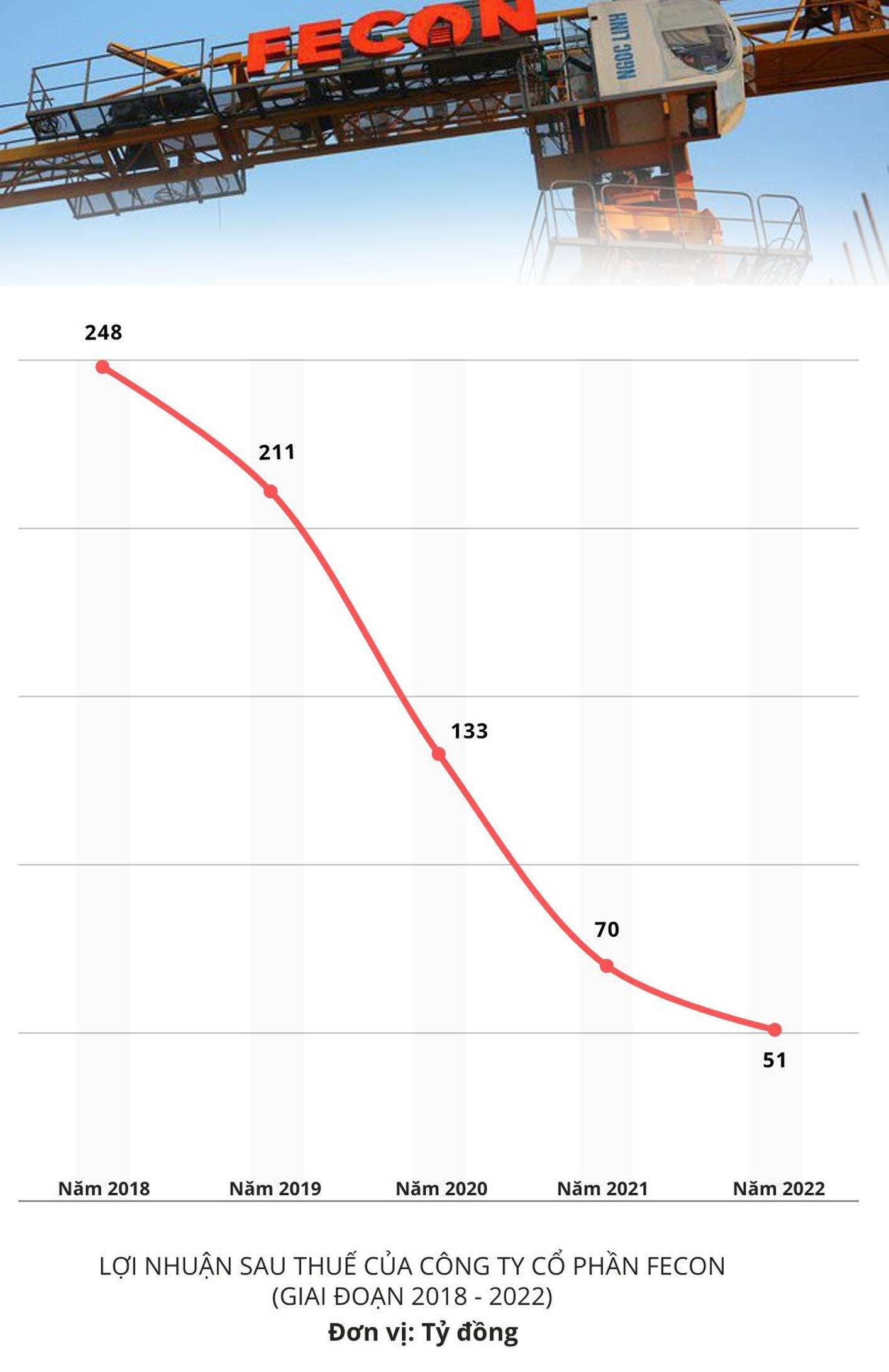 Còn hai năm gần nhất, lãi ròng của FECON lần lượt giảm xuống mức 70,7 tỷ đồng (năm 2021) và 51,6 tỷ đồng (năm 2022).