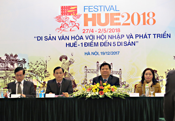 Chiều 19/12, tại Hà Nội - Bộ Văn hóa, Thể thao và Du lịch; Bộ Ngoại giao; Bộ Thông tin và Truyền thông, UBND tỉnh Thừa Thiên - Huế phối hợp tổ chức họp báo giới thiệu Festival Huế năm 2018.