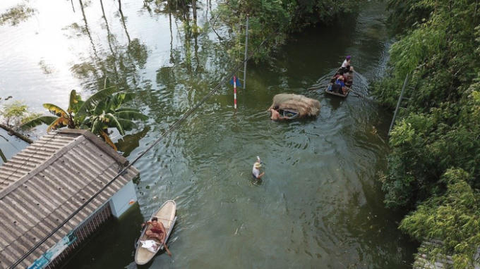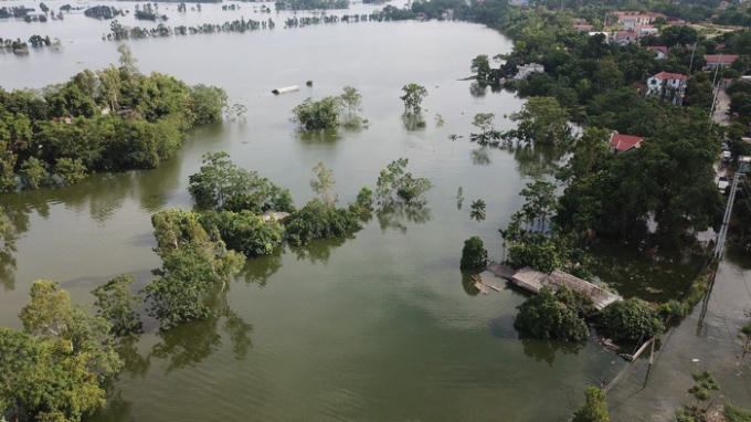 Rất nhiều thôn trong xã Nam Phương Tiến (Chương Mỹ, Hà Nội) vẫn ngập sâu trong nước lũ kéo dài hơn chục ngày qua, đến chiều ngày 30/7 mực nước vẫn đang dần dâng cao. Toàn cảnh ngập lụt với những ngôi nhà ngập sâu dưới biển nước được phóng viên Tiền Phong ghi lại qua góc máy từ trên cao.