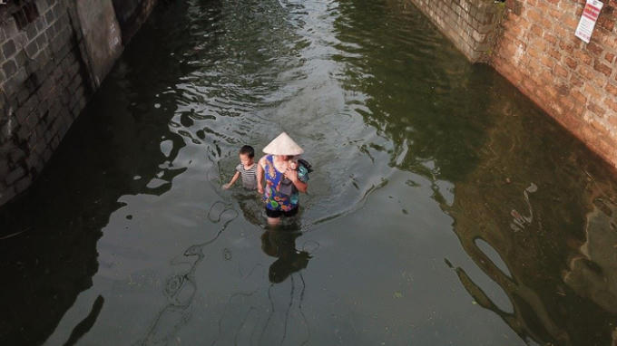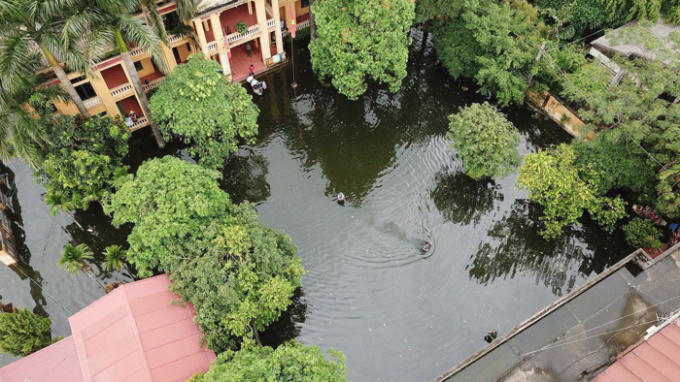 Flycam: Toàn cảnh xã ngoại thành Hà Nội chìm trong biển nước