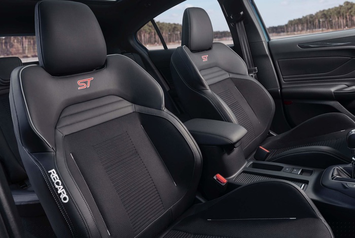 So với thế hệ cũ, Ford Focus ST hoàn toàn mới có thiết kế nổi bật phần đầu của xe là bộ lưới tản nhiệt dạng tổ ong màu đen bóng, cụm đèn pha thanh mảnh, sắc nét, bên dưới là cụm đèn sương mù dạng gương cầu nhỏ, bao bên ngoài là các tấp ốp nhựa màu đen.