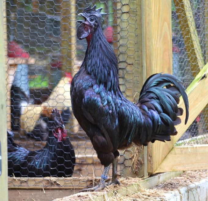 Gà đen là giống gà quý hiếm, có đặc điểm chân 5 móng, thịt đen, xương đen, hàm lượng mỡ trong thịt ít, thịt chắc và rất thơm ngon vào hàng bậc nhất trong các giống gà ở nước ta hiện nay. Ảnh internet.