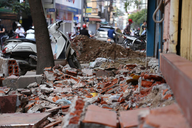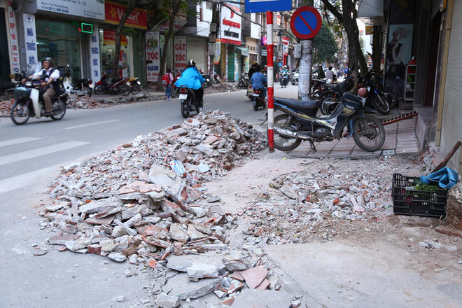 Gạch đá ngổn ngang sau 2 tuần Hà Nội đập bậc tam cấp