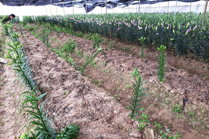 Tổng cộng đã có hơn 1.400 cây hoa ly sắp đến ngày thu hoạch, phục vụ thị trường hoa tết ở hai vườn bị nhổ trộm. Ước tính thiệt hại chừng 50 triệu đồng.