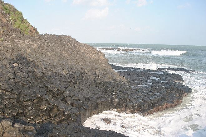Nham thạch phun ra từ miệng núi lửa, gặp nước lạnh đông cứng lại và xảy ra sự rạn nứt toàn bộ khối nham thạch. Phần lớn đá nứt theo mạch dọc, tạo thành những cột thẳng đứng hoặc xiên, cũng có những đường xiết ngang cắt cột đá thành những hình tròn, hình đa giác xếp chồng khít vào nhau như những chồng đĩa.